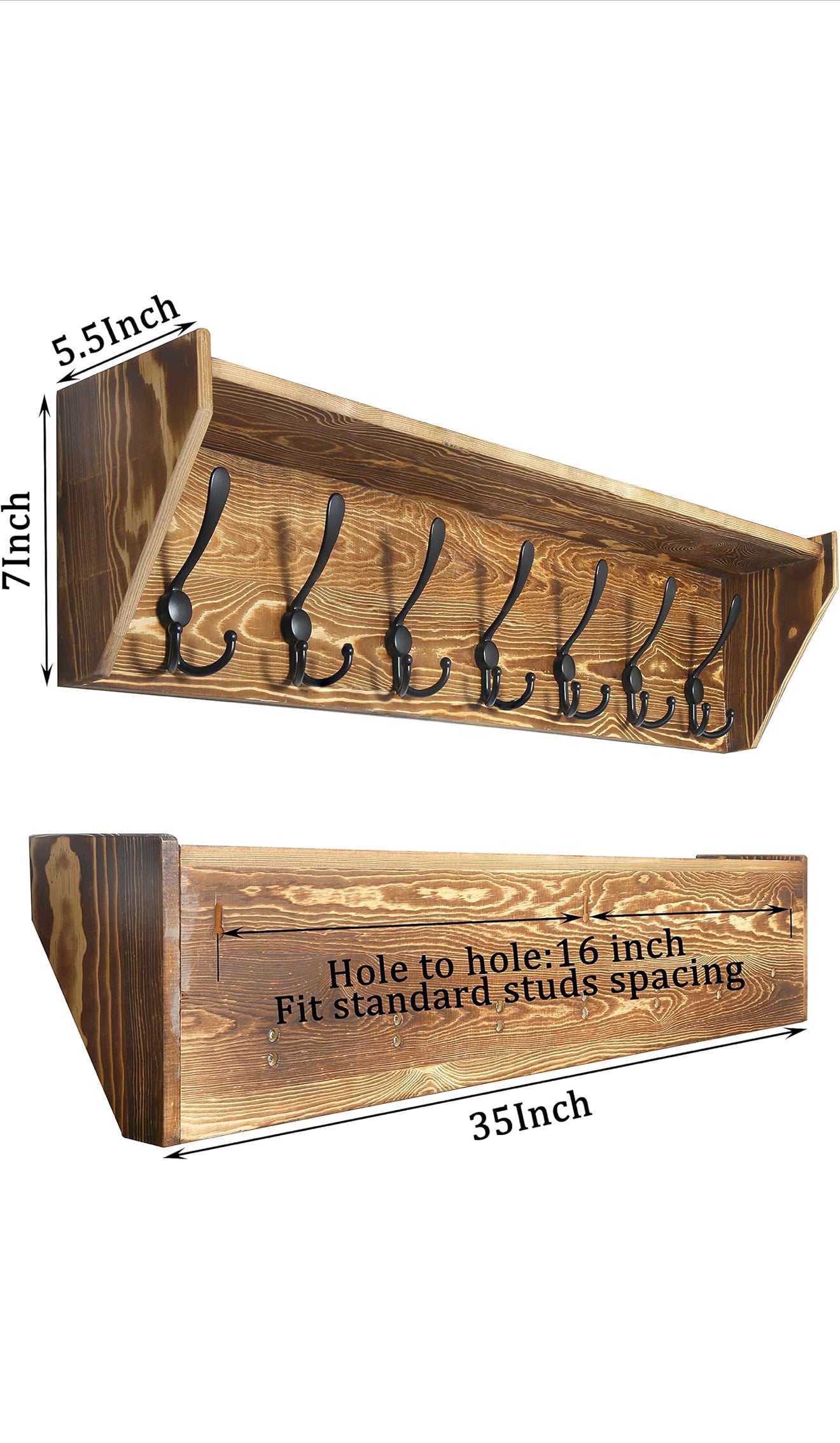 Perchero de pared con estante, estante blanco de 35 pulgadas de largo con ganchos debajo, 7 ganchos triples, estante para llaves para pared, estantes de entrada para pared